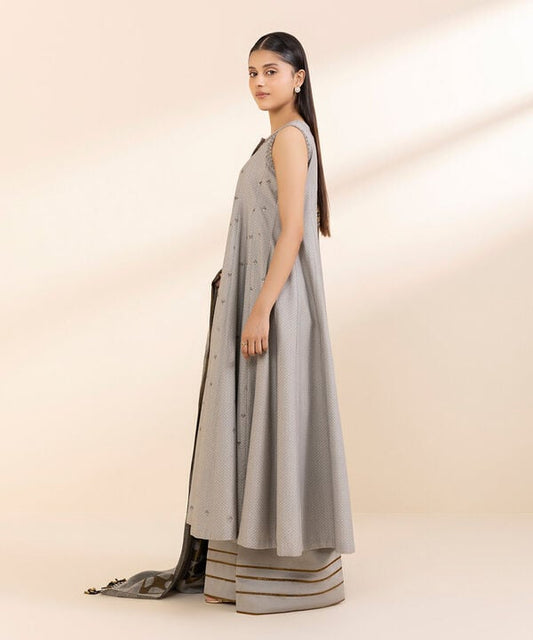 3PC-EMBROIDERED COTTON JACQUARD SUIT