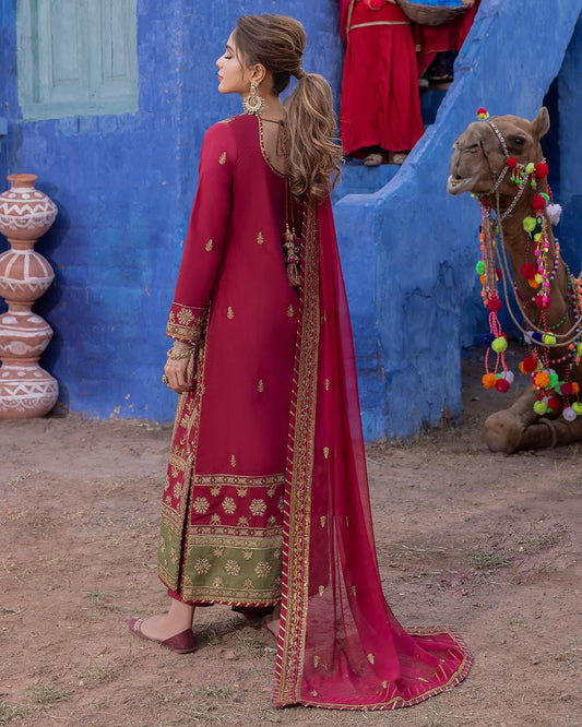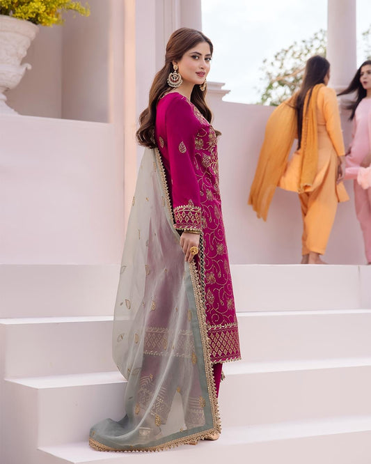 3PC-EMBROIDERED TWISTED SILK SUIT